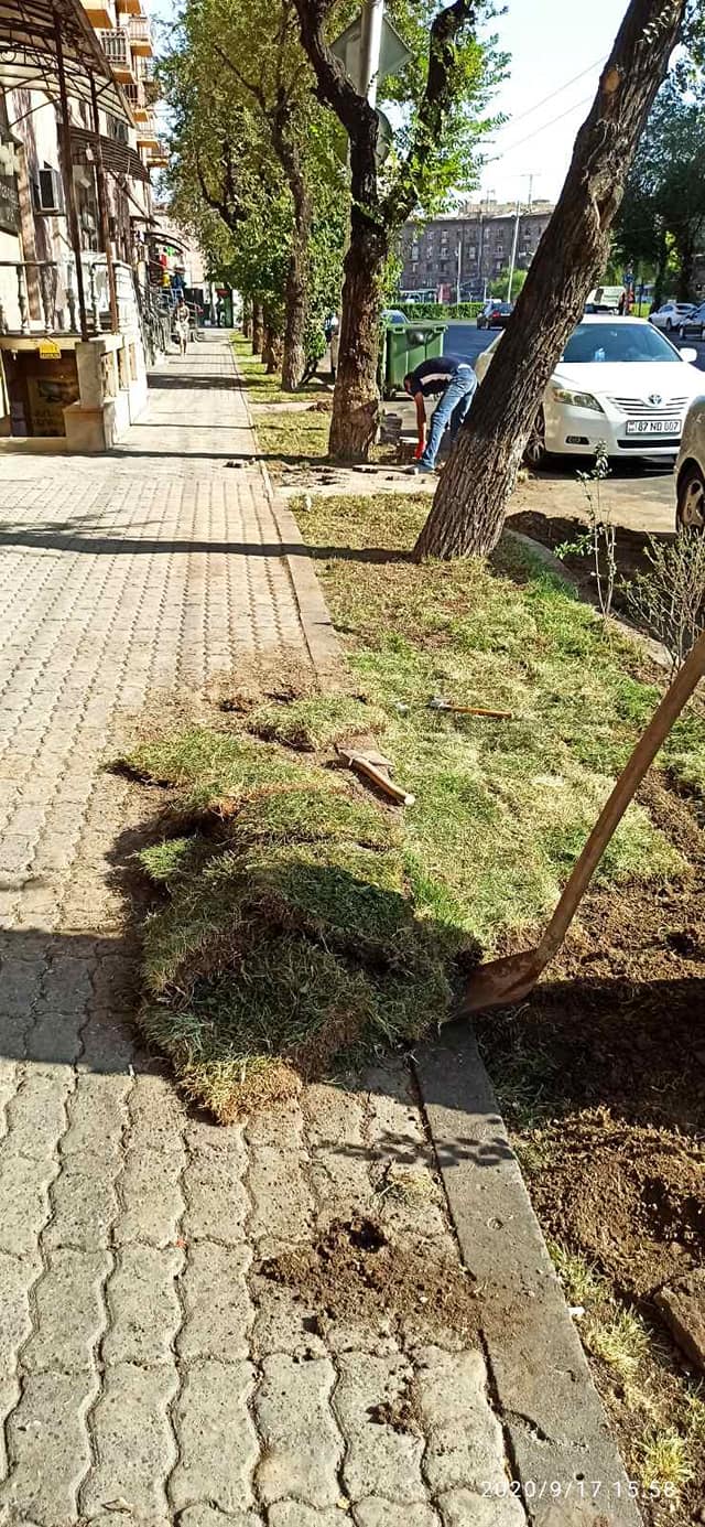 Շենգավիթ վարչական շրջանում մայթեզրերի սալիկները փոխարինվում են սիզամարգով