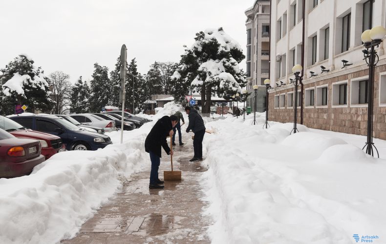 Այսօր՝ մարտի 21-ին, ԱՀ նախագահի հանձնարարականով` պետական բոլոր հիմնարկների աշխատողներն իրենց աշխատավայրում հարակից տարածքներում իրականացրել են ձնամաքրման աշխատանքներ: Այս մասին հայտնում է «Արցախպրես»-ը։