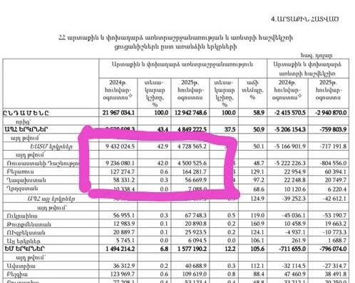 Հիշեցնենք՝ ավելի վաղ հայտնել էինք, որ Դուշանբեում կայացած ԱՊՀ գագաթնաժողովի ժամանակ թվերի շուրջ վեճ ծագեց։ ՀՀ վարչապետը 2025 թվականի համար նշեց 4 միլիարդ դոլարի, իսկ անցյալ տարվա համար՝ 9 միլիարդ դոլարի թիվ, սակայն Ռուսաստանի նախագահը վստահորեն պնդեց, որ թվերն ավելի բարձր են: