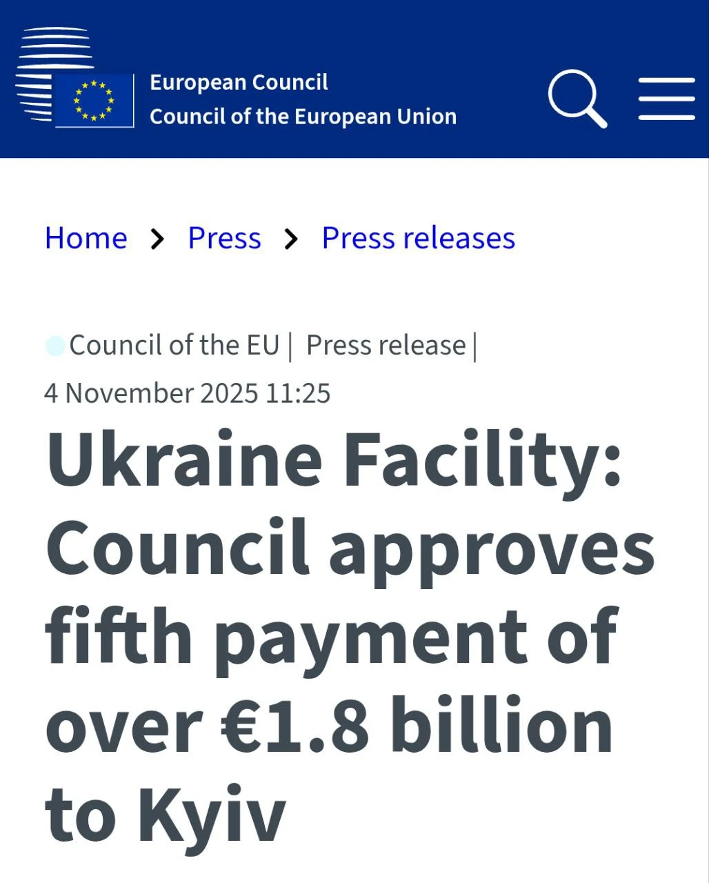 Եվրամիությունը հաստատել է Ukraine Facility ծրագրի հինգերորդ փաթեթը՝ տրամադրելով Ուկրաինային ավելի քան 1,8 միլիարդ եվրո։ Նոր ֆինանսական աջակցությունը նպատակ ունի ապահովել երկրի ֆինանսական կայունությունը, պետական կառույցների անխափան աշխատանքը, ինչպես նաև վերականգնման ծրագրով նախատեսված բարեփոխումների իրականացումը։