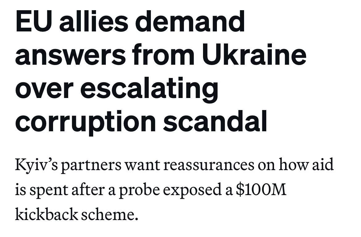 ԵՄ մի շարք դաշնակից երկրներ Կիևից պաշտոնական բացատրություններ և երաշխիքներ են պահանջում՝ կապված Ուկրաինայում աճող կոռուպցիոն սկանդալի հետ։ Ինչպես գրում է Politico-ն, պահանջները առաջացել են այն բանից հետո, երբ հետաքննությունը բացահայտել է մոտ 100 միլիոն դոլարի չափով «ատկատների» սխեմա, որն առնչվել է պետական ֆինանսավորմանը։