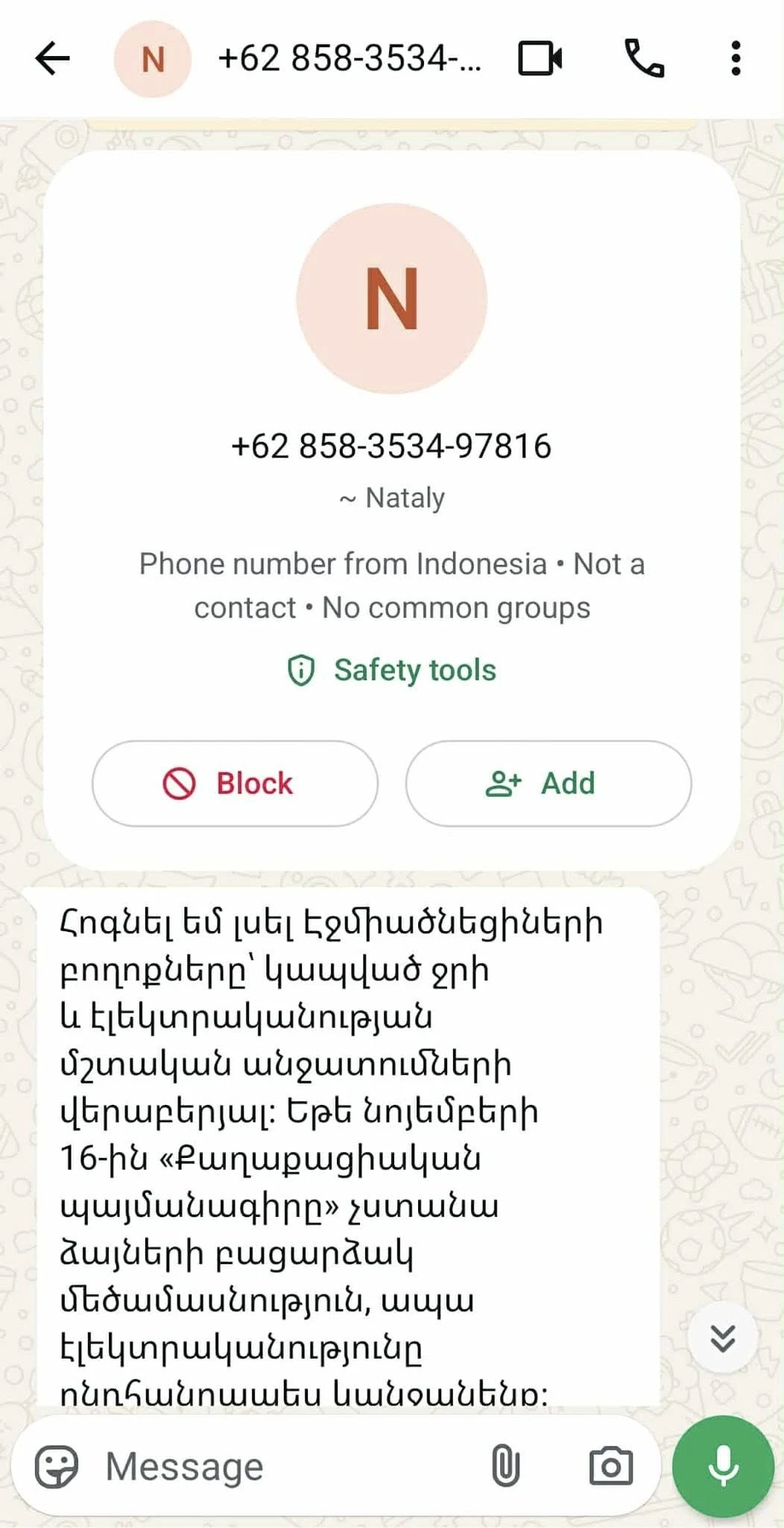 Կեղծ SMS-ներ Ինդոնեզիայի համարներից․ Վաղարշապատում փորձում են մոլորեցնել քաղաքացիներին. նախարարն ահազանգում է