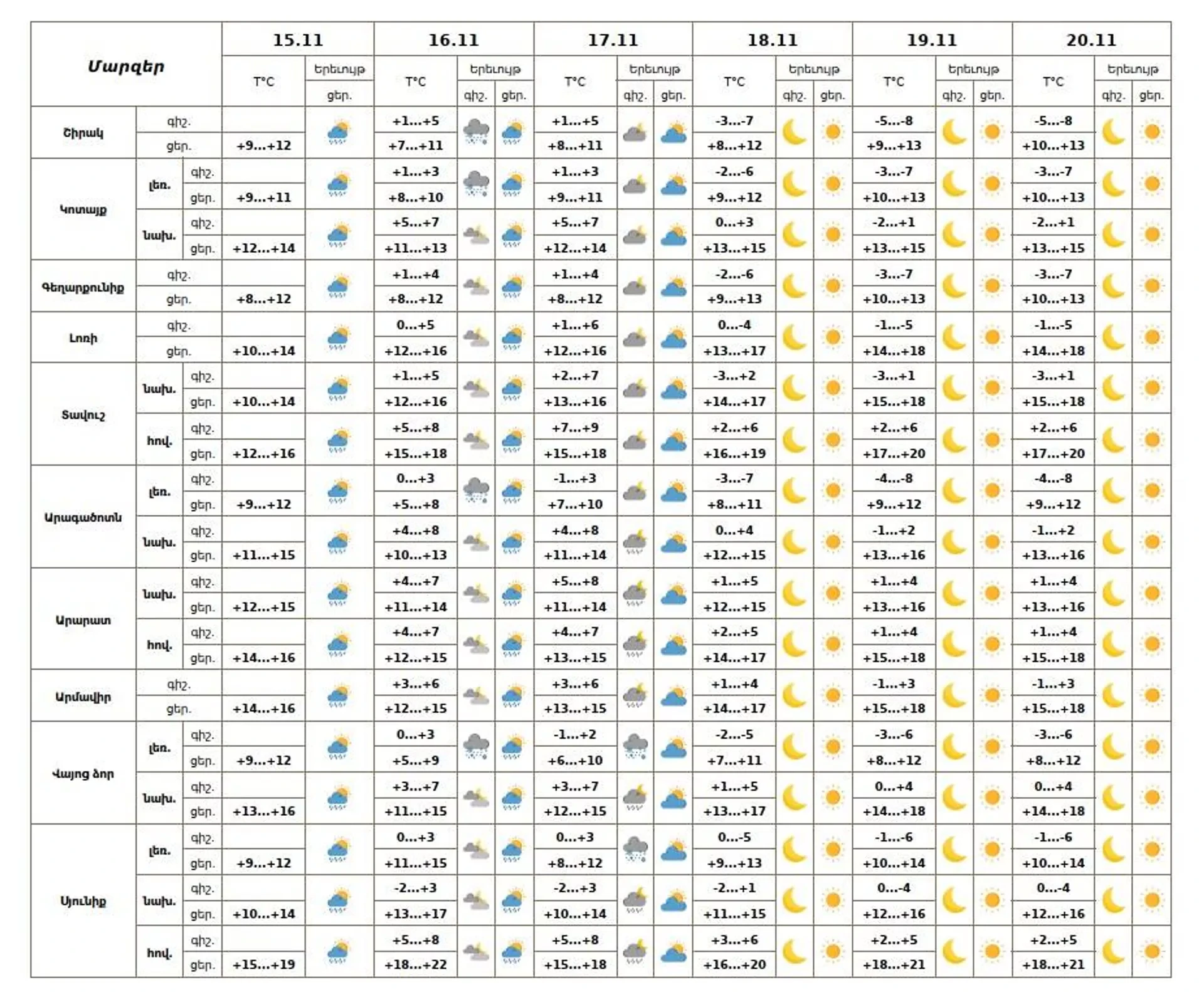 Նոյեմբերի 17-ի ցերեկը և հաջորդ երկու օրերին տեղումներ չեն գրանցվի։