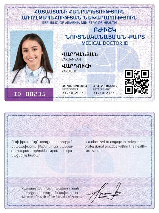 Սիրելի´ բժիշկներ, բուժաշխատողների ռեգիստրի ներդմամբ նման ID քարտեր ենք նախատեսել ձեզ համար: Այս մասին ֆեյսբուքյան իր էջում գրել է Առողջապահության նախարար Անահիտ Ավանեսյանը և կից լուսանկար հրապարակել։