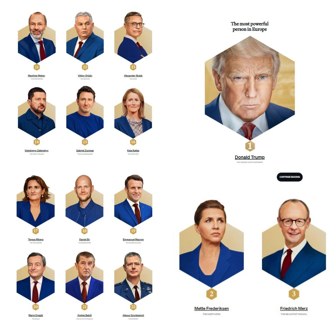 Վարկանիշի հեղինակները ընդգծում են, որ Թրամփը շարունակում է ազդել Եվրոպայի ներքաղաքական և արտաքին քաղաքական դաշտի վրա՝ իր պայմաններով վերաիմաստավորելով մի շարք հարաբերություններ։ Այս գնահատականով նա առաջ է անցել եվրոպական մի շարք ղեկավարներից։