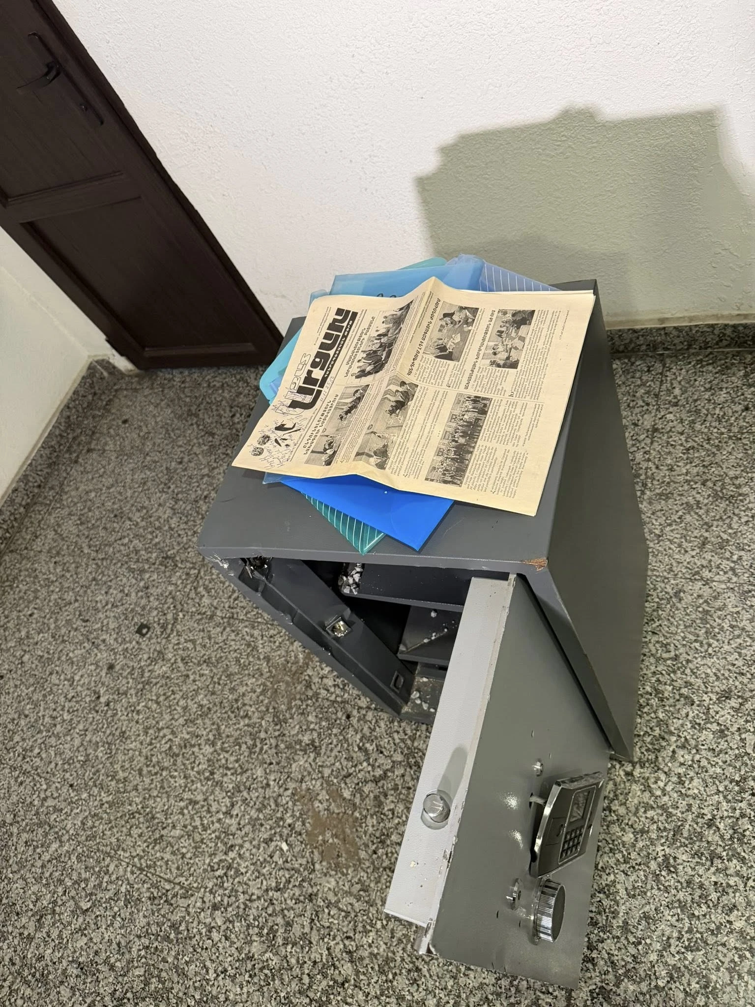 «Այսօրվա խուզարկության արդյունքում ջարդված չհրկիզվող պահարանը և հայտնաբերված հանցավոր առարկան՝ «Ազատ Արցախ» հանրապետական թերթի մեկ օրինակ»,- այս մասին իր էջում գրել է փաստաբան Ռոման Երիցյանը: