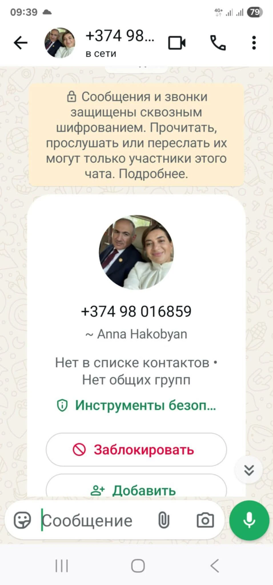 ՀՀ վարչապետի տիկին Աննա Հակոբյանը ֆեյսբուքյան իր էջում հայտնել է, որ WhatsApp հավելվածում իր անունով բացվել է կեղծ օգտահաշիվ: