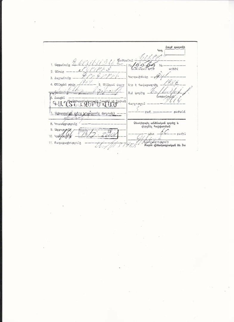 Կից ներկայացվում է Եզրաս արքեպիսկոպոս Ներսիսյանի՝ համագործակցության հանգամանքը հավաստող գաղտնազերծված փաստաթղթի օրինակը։
