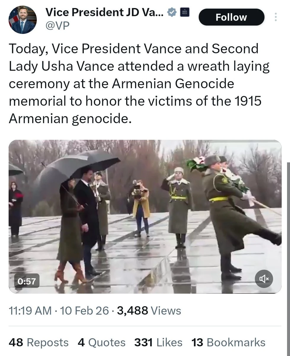 «Ազատությունը» բացառիկ մեկնաբանություն է ստացել Վենսի աշխատակազմից՝ Հայոց ցեղասպանության հուշահամալիր այցի մասին գրառումը ջնջելու վերաբերյալ: