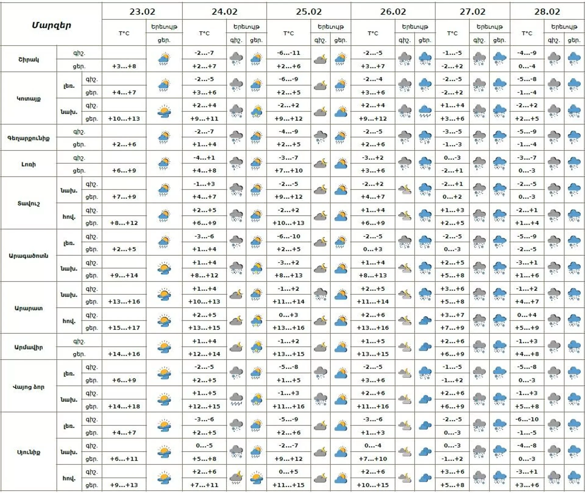 Օդի ջերմաստիճանը փետրվարի 26-28-ի ցերեկային ժամերին աստիճանաբար կնվազի 8-10 աստիճանով: