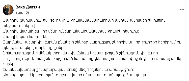 Ֆեյսբուքյան օգտատերերից Վակա Դավթյանը գրել է․