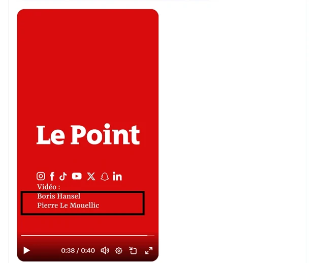 Տեսանյութի վրա նշված լոգոն ֆրանսիական հայտնի լրատվամիջոցի անվանումն է՝ «Le Point»։ Այն քաղաքական և հասարակական շաբաթաթերթ է, որը համարվում է Ֆրանսիայի երեք խոշորագույն լրատվական ամսագրերից մեկը։