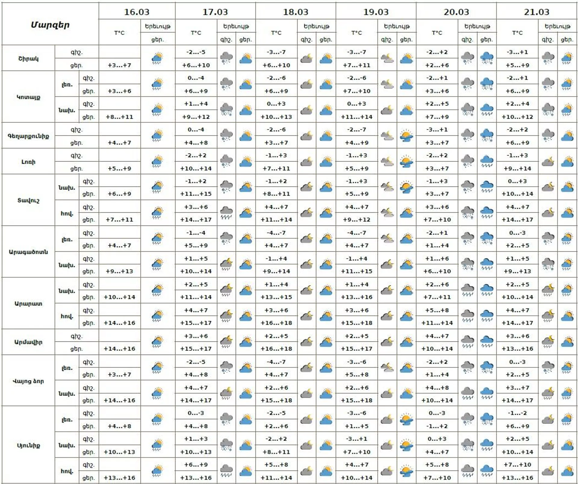 Մինչ այդ քամին կլինի հյուսիսարևելյան` 2-5 մ/վ արագությամբ։ Օդի ջերմաստիճանը մինչև մարտի 19- ը ցերեկային ժամերին աստիճանաբար կբարձրանա 4-6 աստիճանով։