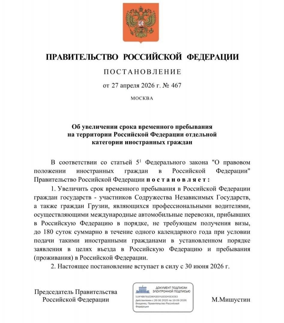 Հիշեցնենք՝ ավելի վաղ հայտնել էինք, որ Ռուսաստանի Դաշնության կառավարությունը մինչև 180 օր է երկարաձգել մեկ օրացուցային տարվա ընթացքում Ռուսաստանի տարածքում ԱՊՀ երկրների և Վրաստանի այն վարորդների ժամանակավոր կացության ժամկետը, որոնք իրականացնում են միջազգային ավտոմոբիլային փոխադրումներ: